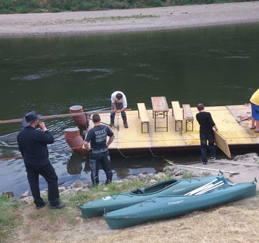 Erlebe eine unvergessliche Floßfahrt auf der March. Unser robustes Holzfloß bietet Platz für bis zu 18 Personen (durchschnittlich 80 kg pro Person) und eignet sich ideal für entspannte Ausflüge mit Familie, Freunden oder Kollegen.
