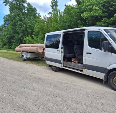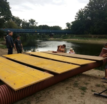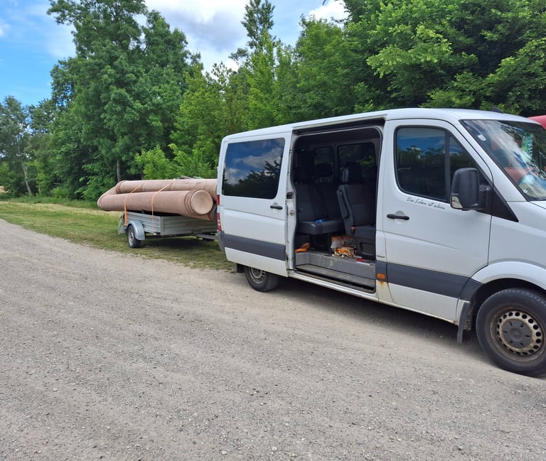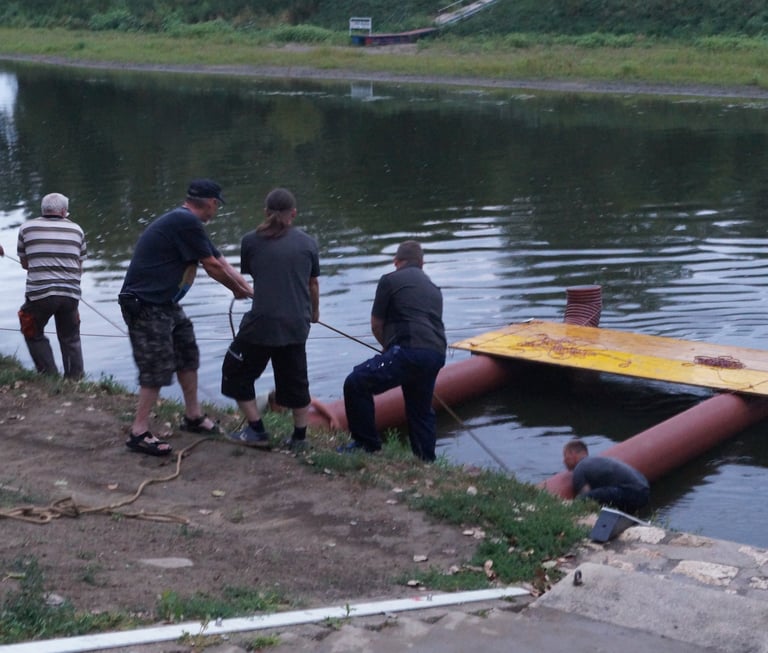 Treffpunkt ist in Dürnkrut (oder Angern) – ein Teil der Gruppe (bis zu 8 Personen) fährt mit mir nach Hohenau, wo das Floß aufgebaut und zu Wasser gelassen wird.
